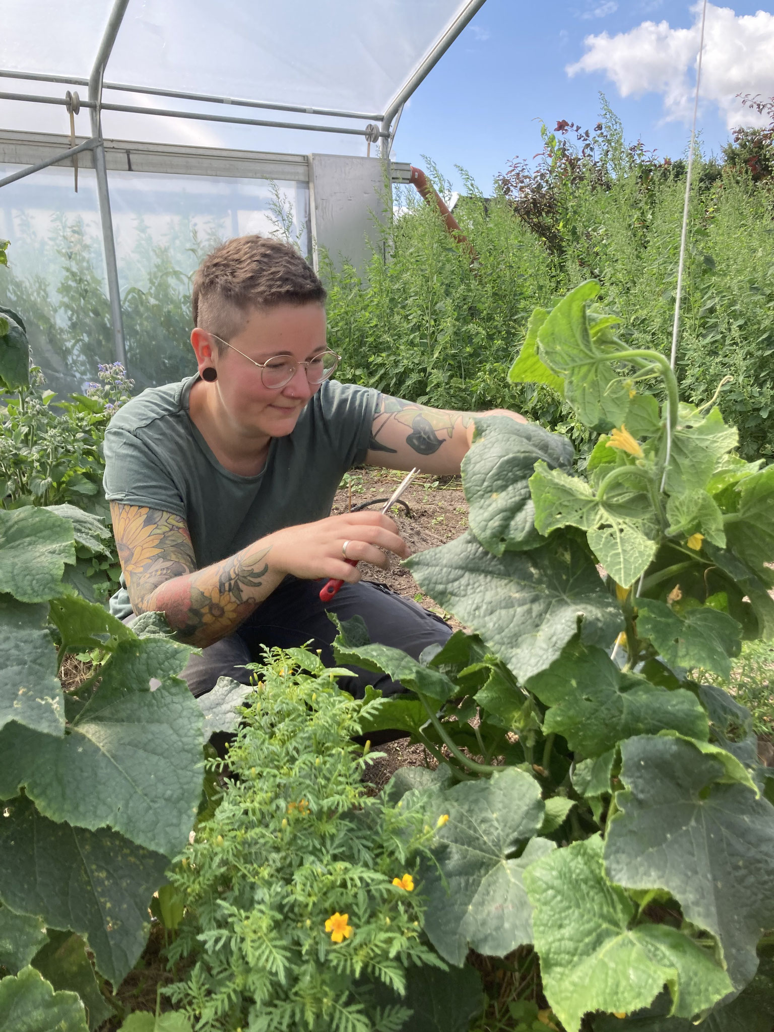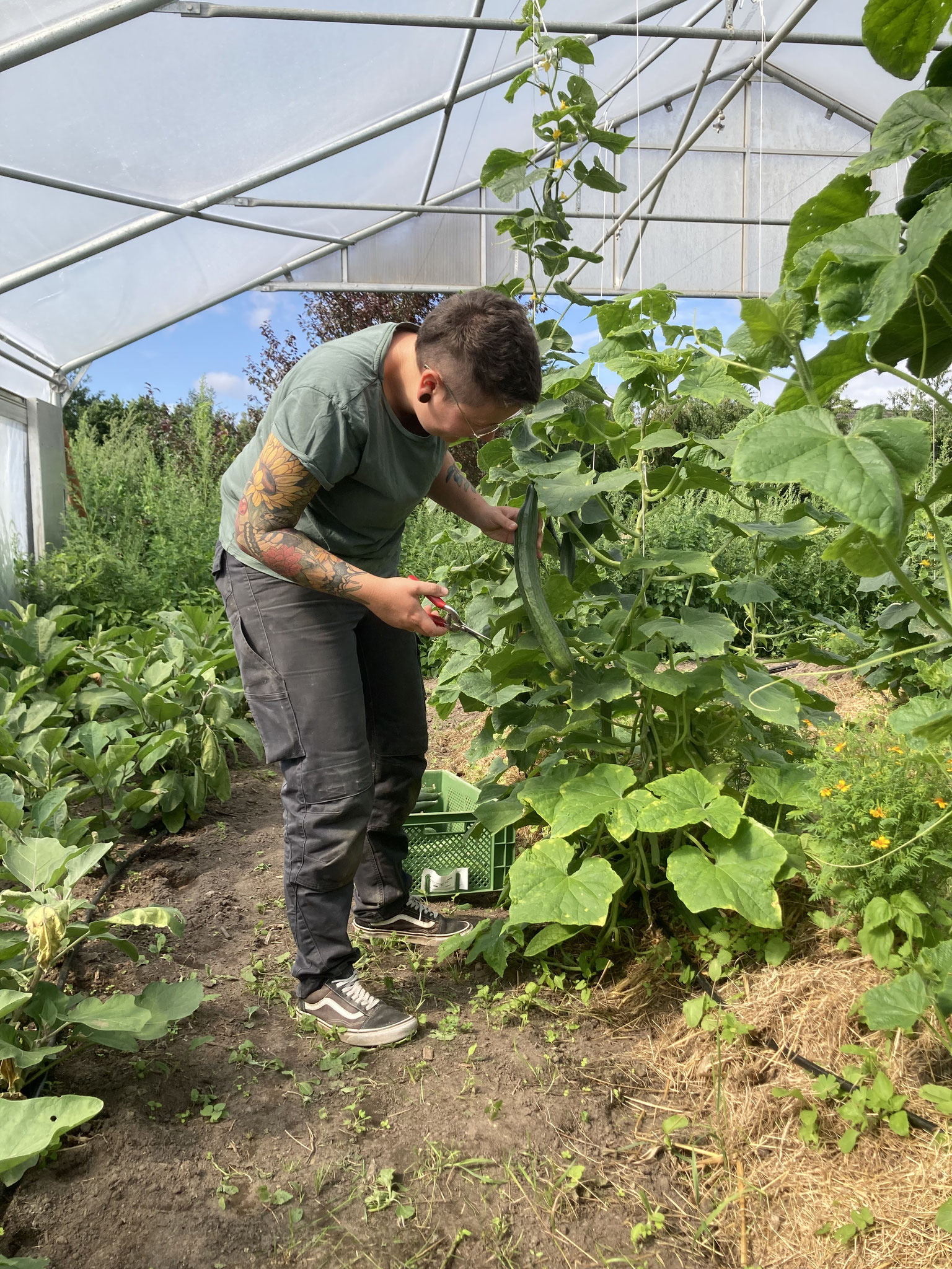 Anne's Wunsch war es, ein Thema im Gewächshaus zu finden, da sie dort sehr gerne arbeitet. In Absprache mit Andreas hat sie dann die Gurke ergriffen und als Thema den Anbauversuch von veredelten und unveredelten Gurken gewählt.