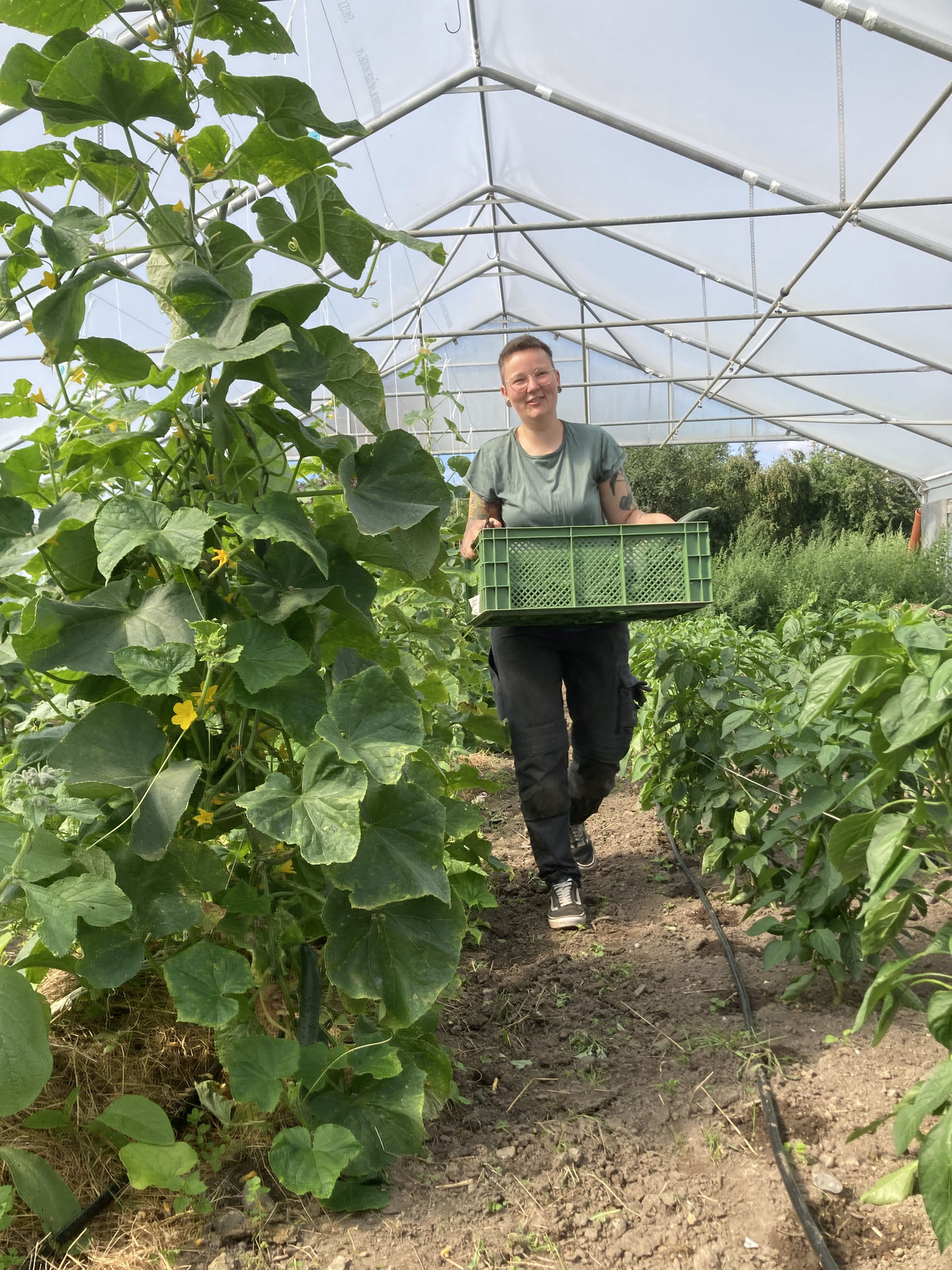 Jetzt sitzen wir also im Gewächshaus, da ist es schön warm, zwischen den Gurken und Anne erzählt mir, wie sie auf die Idee gekommen ist veredelte Gurken auszuprobieren: