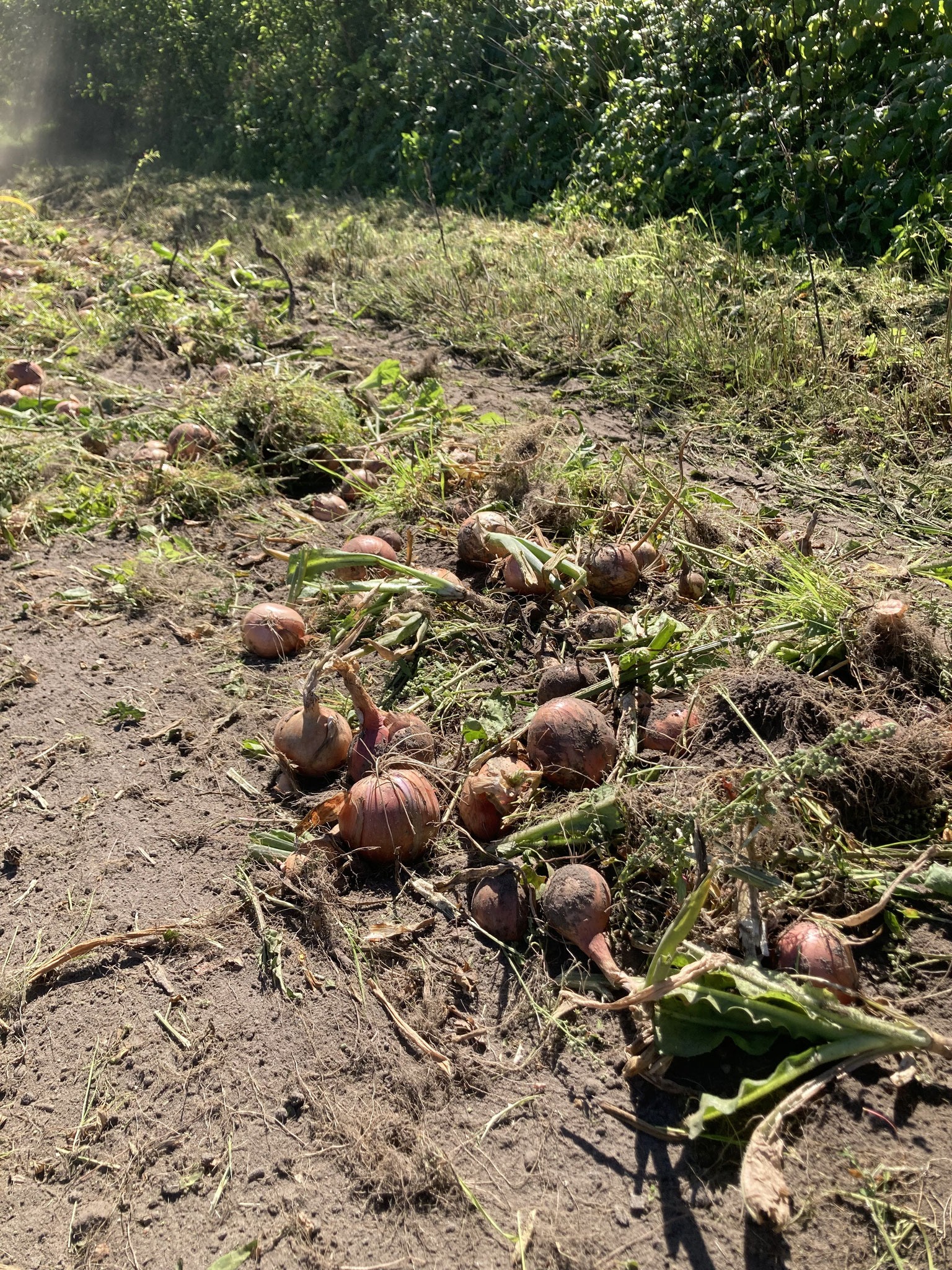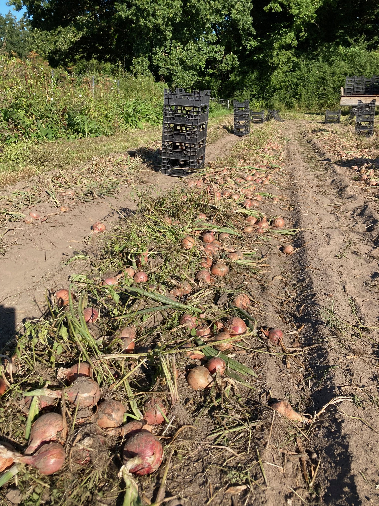 Dieses Jahr haben wir wieder die leckeren Zwiebelsorten "Sturon" und "Rose de Keruel" für euch angebaut.